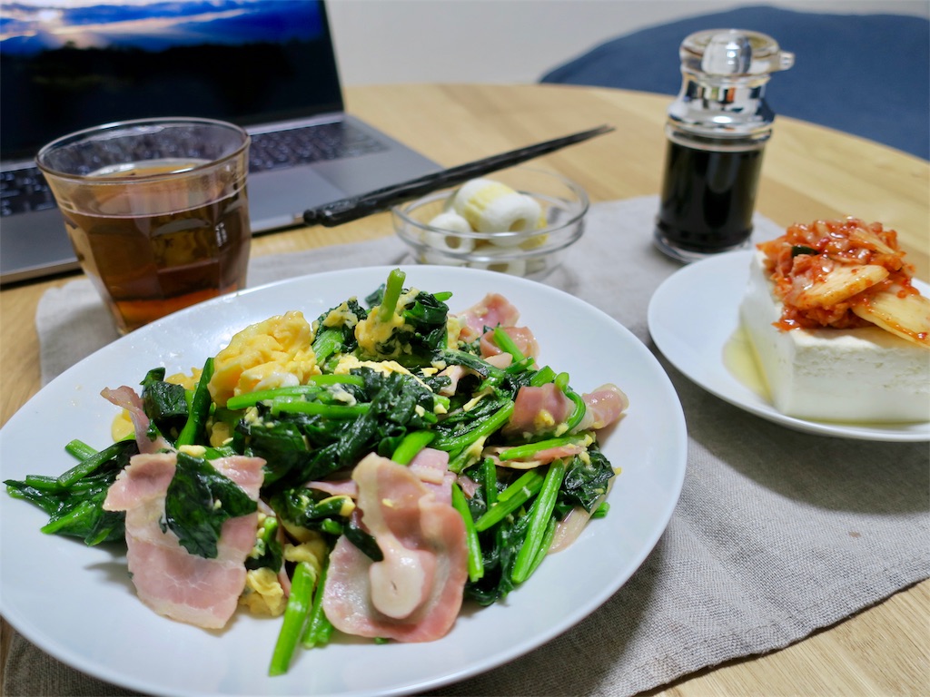 2019-04-03 ほうれん草ソテー 晩酌 転勤から2ヶ月が経過した... 前任者から中途半端な状態でまる投げされた仕事が漸く軌道にのってきた... この歳になってこんなに苦労をするとは思わなかった... このまま無事に終わればいいが... 21:00帰宅... 飲んで寝るだけ… 明日は休肝だな...