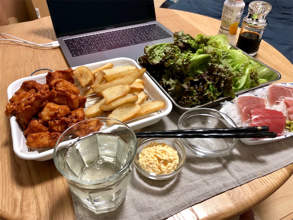 2019-06-08 唐揚げ 晩酌 休日出勤… 午前中で仕事は終わり、今夜の肴を仕入れて帰宅… iPhone片手にダラダラと日没まで過ごす… 適当な動画を観ながらダラダラ飲む、そして明日は休み…最高ですな。