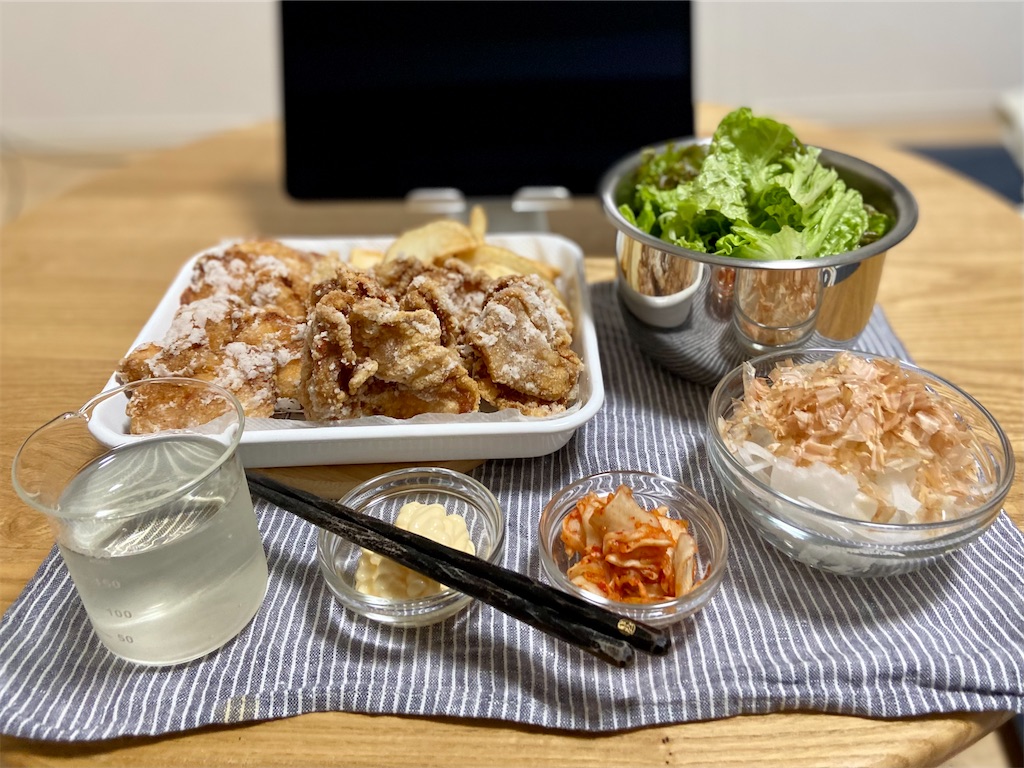 2021-05-27 鶏唐豚唐 晩酌 2021年5月27日(木) 夜勤明け…… 何だかんだと仕事が終わらず13時退社…… 肌寒い雨、鍋もありだなぁ…そんな妄想をしながら肴を仕入れて帰宅…… 外はまだ明るいが、始めちゃいますかね…… 肴は鍋ではなく、揚物になっていた…… 揚物と日本酒、幸せですな……
