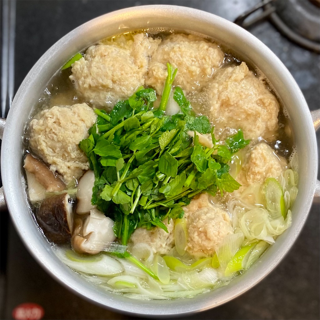2022-02-07 鶏団子鍋 晩酌 2022年2月6日(日) 午前中で仕事が片付き、デパ地下に寄って帰宅。 昆布を水に浸して、下拵えをしていたら何時の間にかイイ時間、明日も仕事だしさっさと始めますかね……今年最初の重い仕事に取り敢えずキリがついた。その仕事をこなす為に疎かになっていた軽い仕事が重なりに重なり重くのし掛かる、まさに負の連鎖。何時になったら断ち切れるのか……