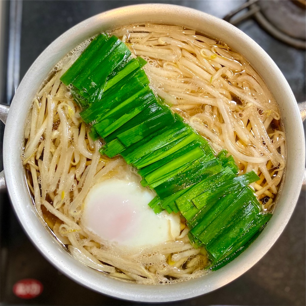 2023-12-23 もやし鍋 晩酌 2023年12月22日(金) サビ残。 今週は早朝現場が多く内勤処理が全く出来ていない、一気に処理をしてしまおうと思ったが集中力が続かない。上司が黙々と業務処理を進めているのを横目にそっとPCの電源を落とす…… 閉店間際のスーパーに駆け込みもやしをGET。日付が変わる前に始めますかね……品薄の精肉コーナーで売れ残っていた普段は見かけないシャブシャブ用プチ高級豚肉、何となく気になり買物カゴにIN。この豚肉マジ旨。あまり物には福がありました……